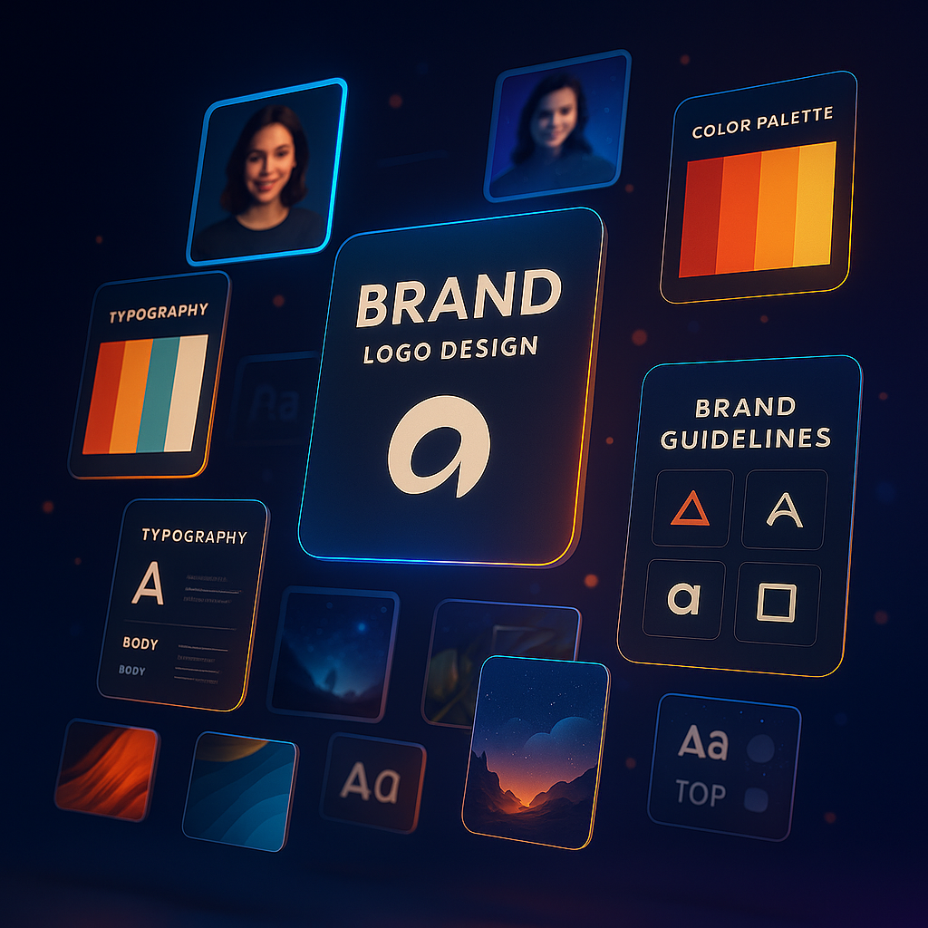 Build a premium, consistent brand identity with AI-assisted strategy + design: logo direction, color palette, typography, and a ready-to-use brand kit.